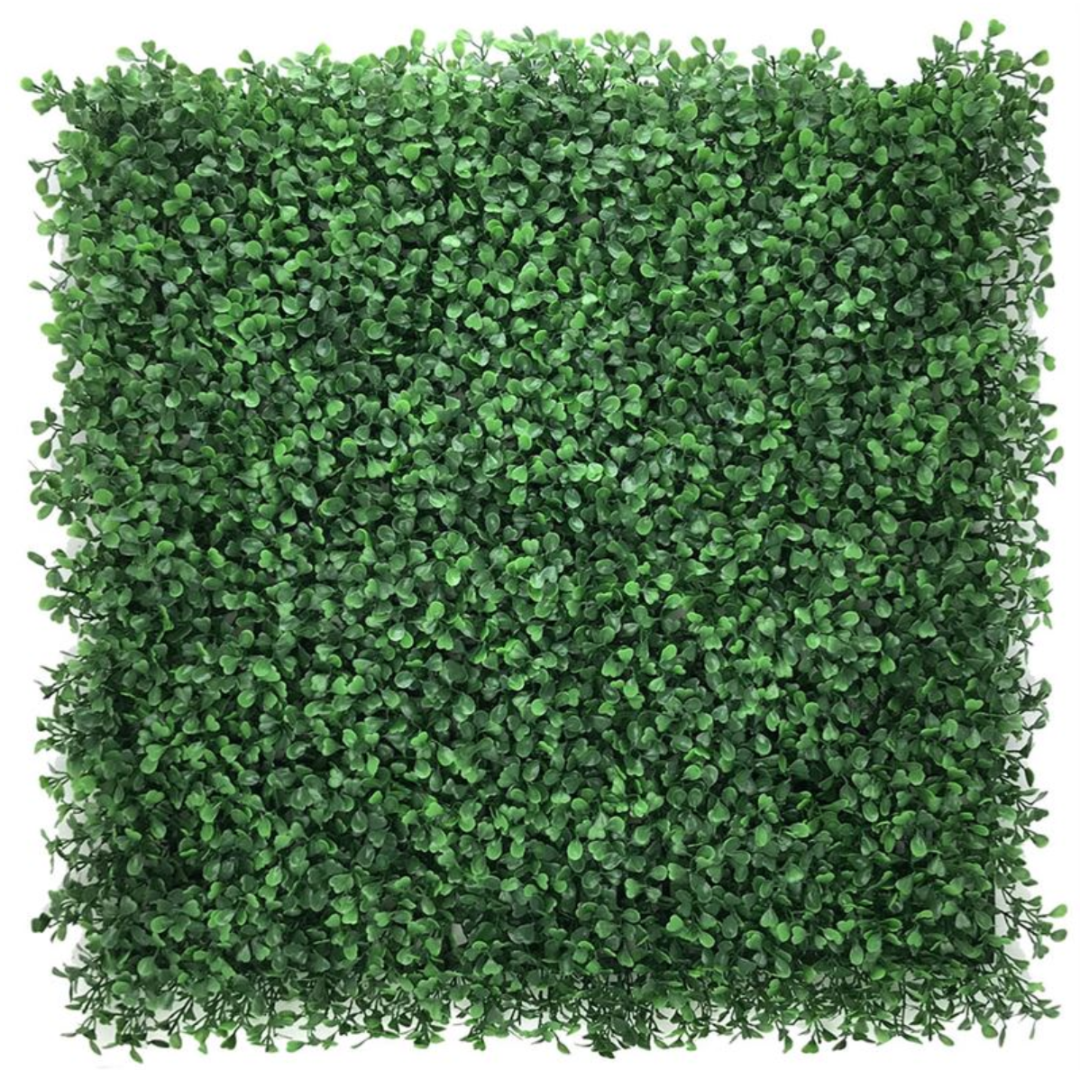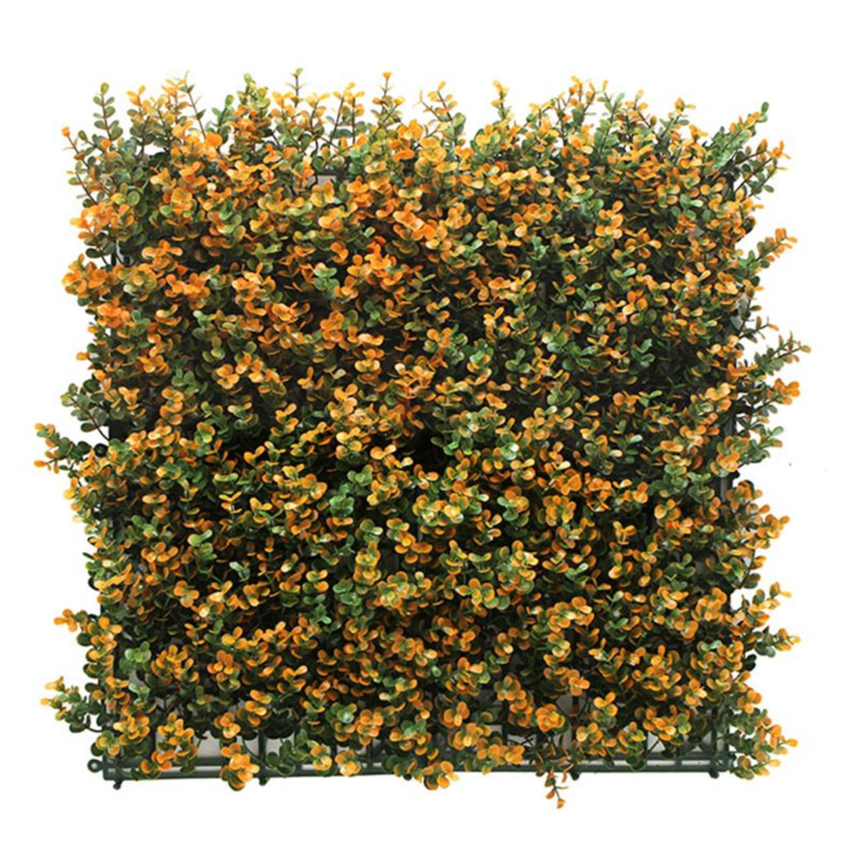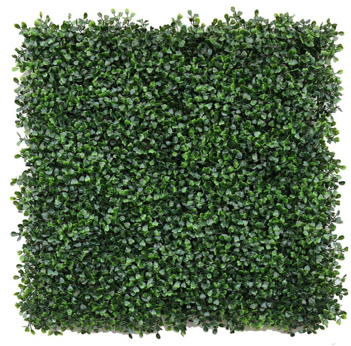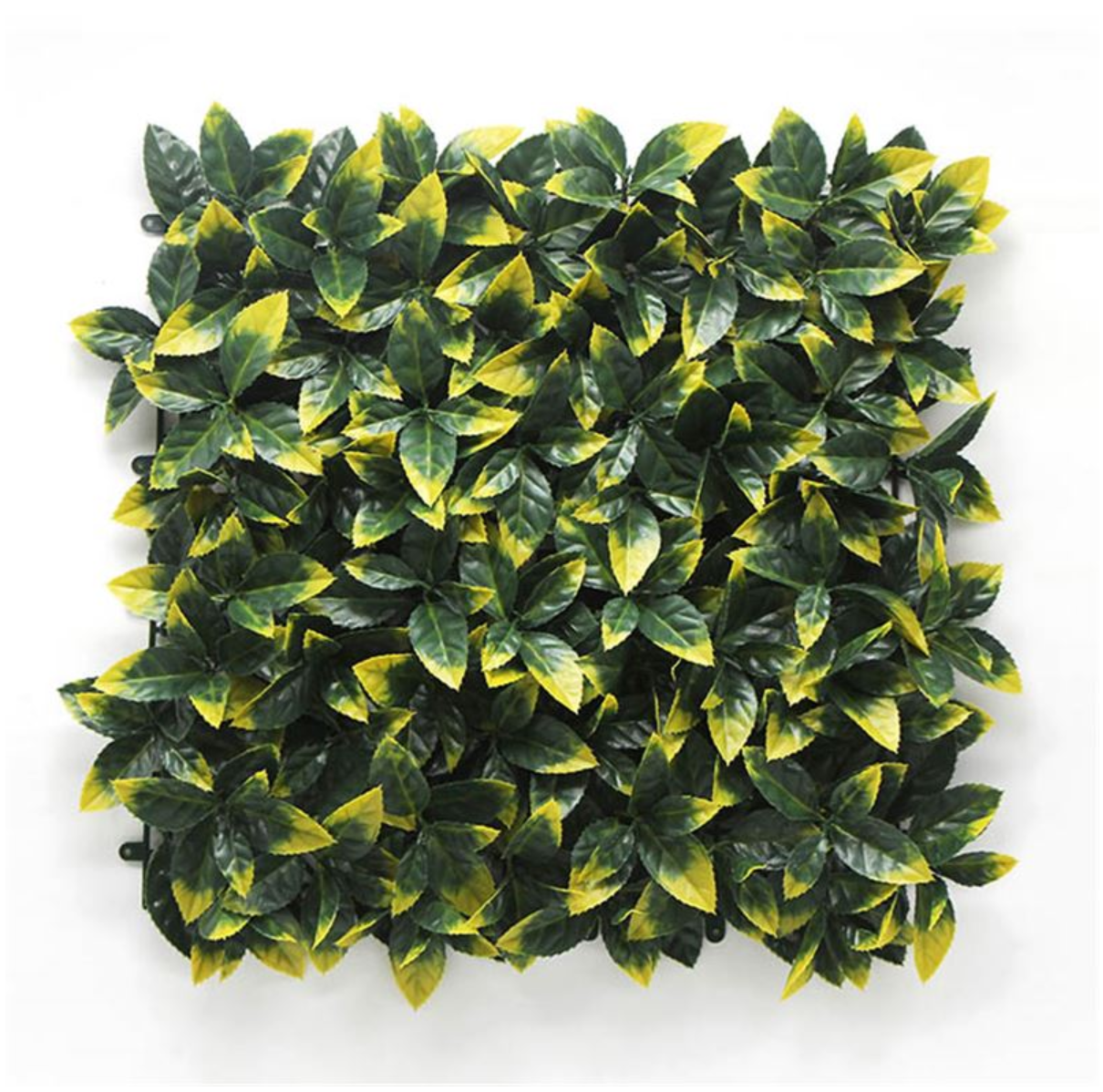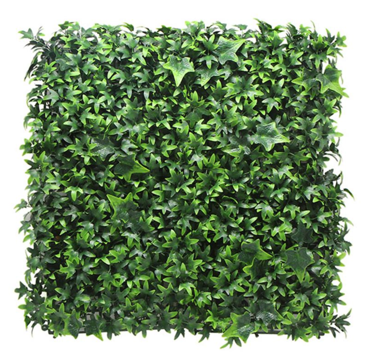 Synthetic decorative panel with dense foliage, in a tile size of 0.50m x 0.50m. It provides a sense of vitality and naturalness to your space. Decorate your outdoor or indoor area with foliage panels and create a unique vertical garden.