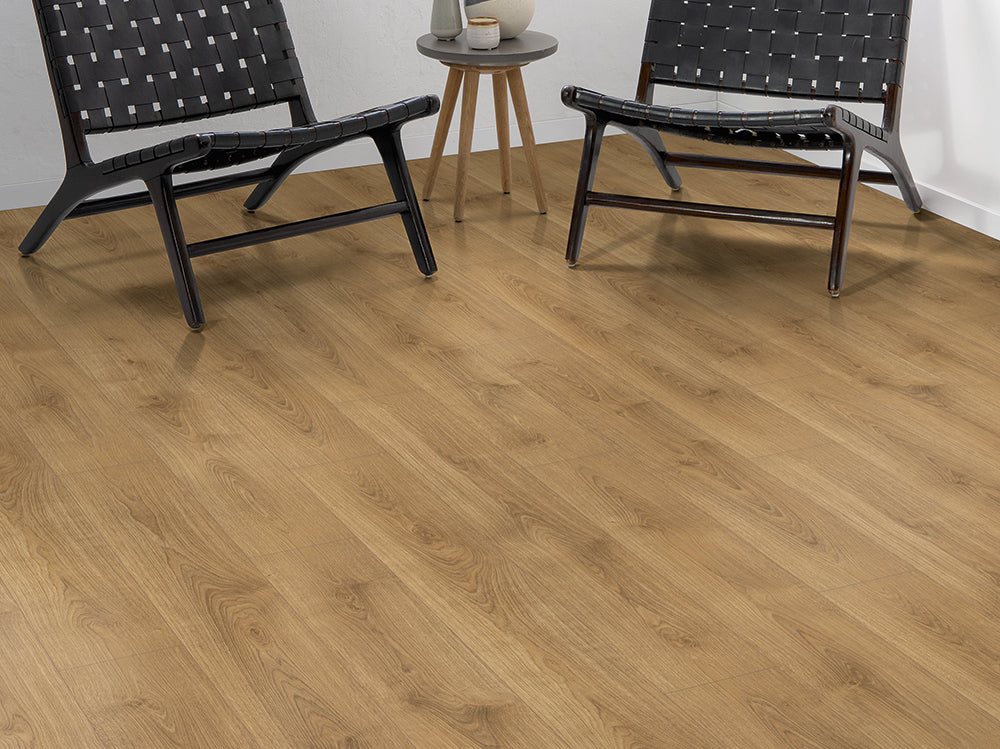 From a cosy living room to a purist loft, from a rustic dining area to an inviting hotel room: Laminate is one of the most popular types of flooring there is. And it is one of the most versatile. Due to the variety of authentic decors, from trendy solid wood optics to Scandinavian lightness and stylish elegance, the perfect design can be found for every room and interior design wish. In addition to the wide range of decors, our Laminate Flooring features high-quality workmanship and functional properties. It is robust and easy-care, flexible and quick to install. All of this at an excellent price-performance ratio.Feel the quality of our Laminate Flooring at every turn.