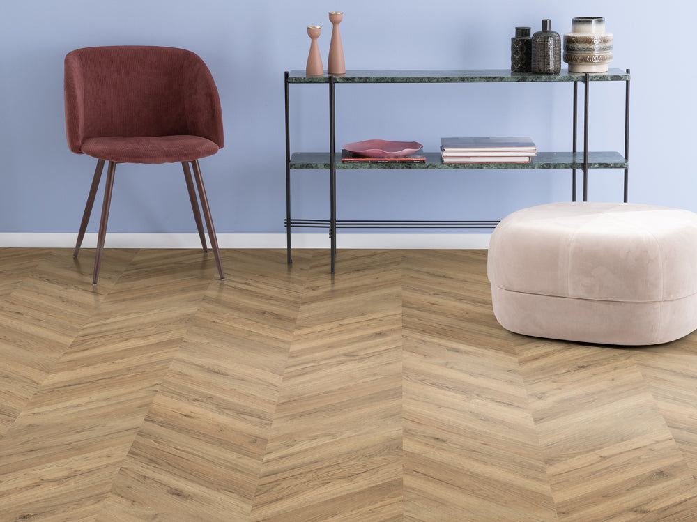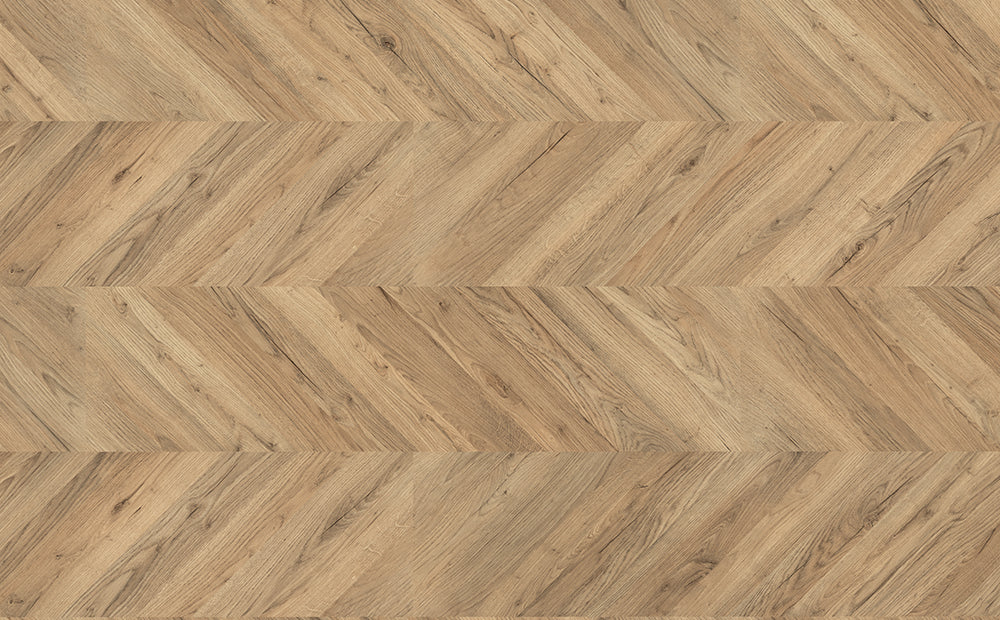 Light Rillington Oakis a modern laminate in a rustic character with a herringbone pattern.