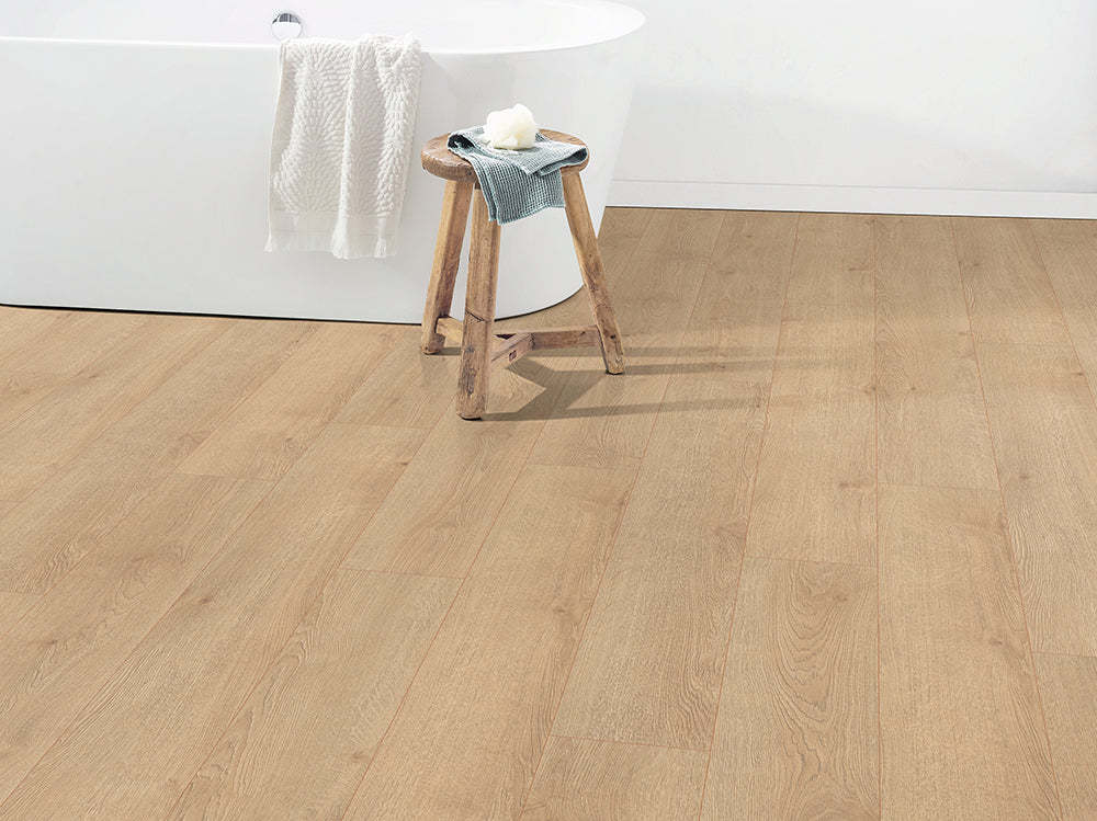 From a cosy living room to a purist loft, from a rustic dining area to an inviting hotel room: Laminate is one of the most popular types of flooring there is. And it is one of the most versatile. Due to the variety of authentic decors, from trendy solid wood optics to Scandinavian lightness and stylish elegance, the perfect design can be found for every room and interior design wish. In addition to the wide range of decors, our Laminate Flooring features high-quality workmanship and functional properties. It is robust and easy-care, flexible and quick to install. All of this at an excellent price-performance ratio.Feel the quality of our Laminate Flooring at every turn.