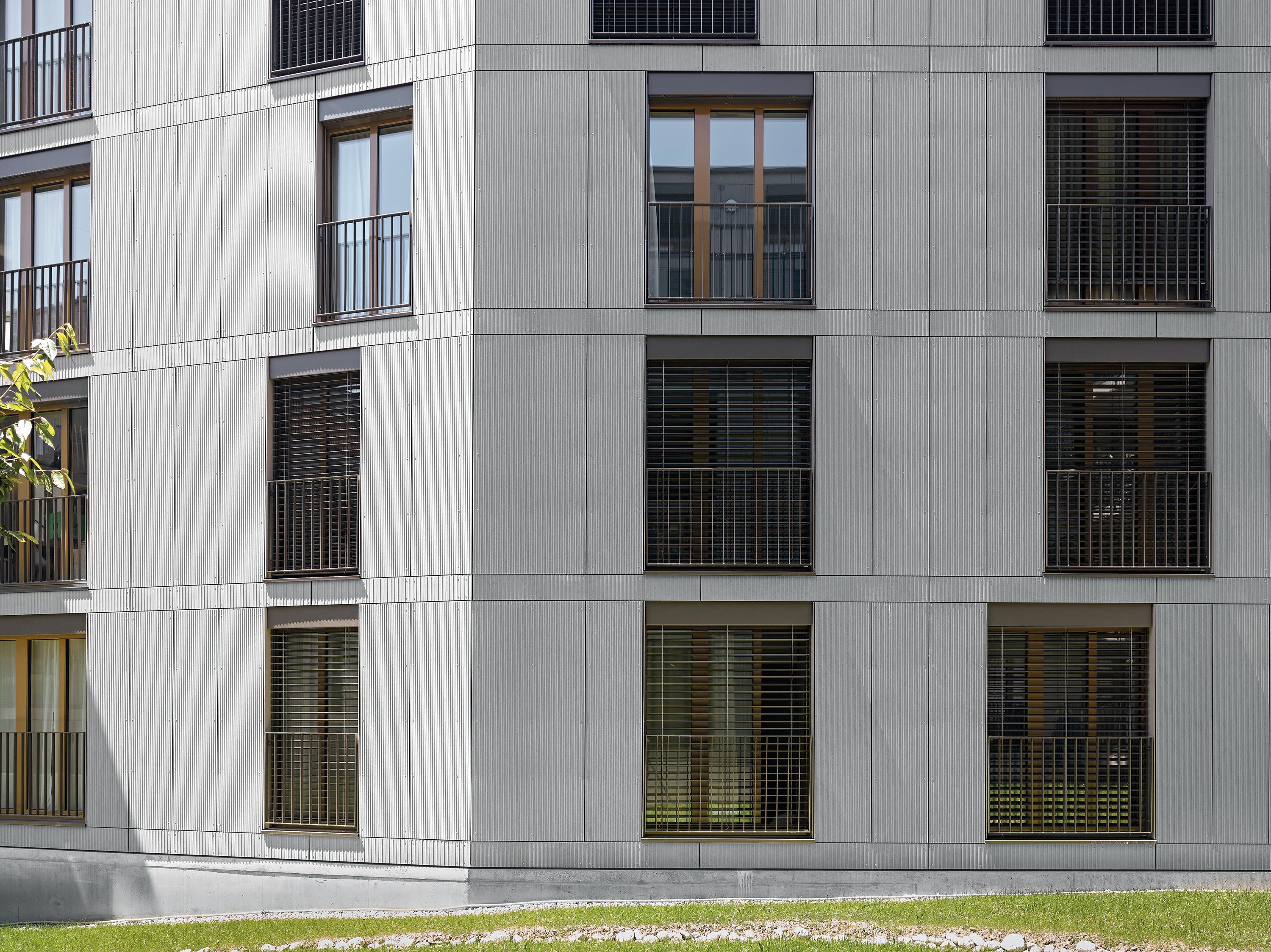 Gravial is a naturally dried fibre cement board with a linear milled surface structure and glazing coating. Gravial's linear milling creates an impressive play of light and shadow, depending on the time of day and the angle of view. With the exception of one brown tone, the colour line moves in soft grey tones from white to black. The transition from light to dark in just a few steps is successful particularly because of the subtle shadows created on each panel. Gravial gives shape to dynamic, lively building envelopes.