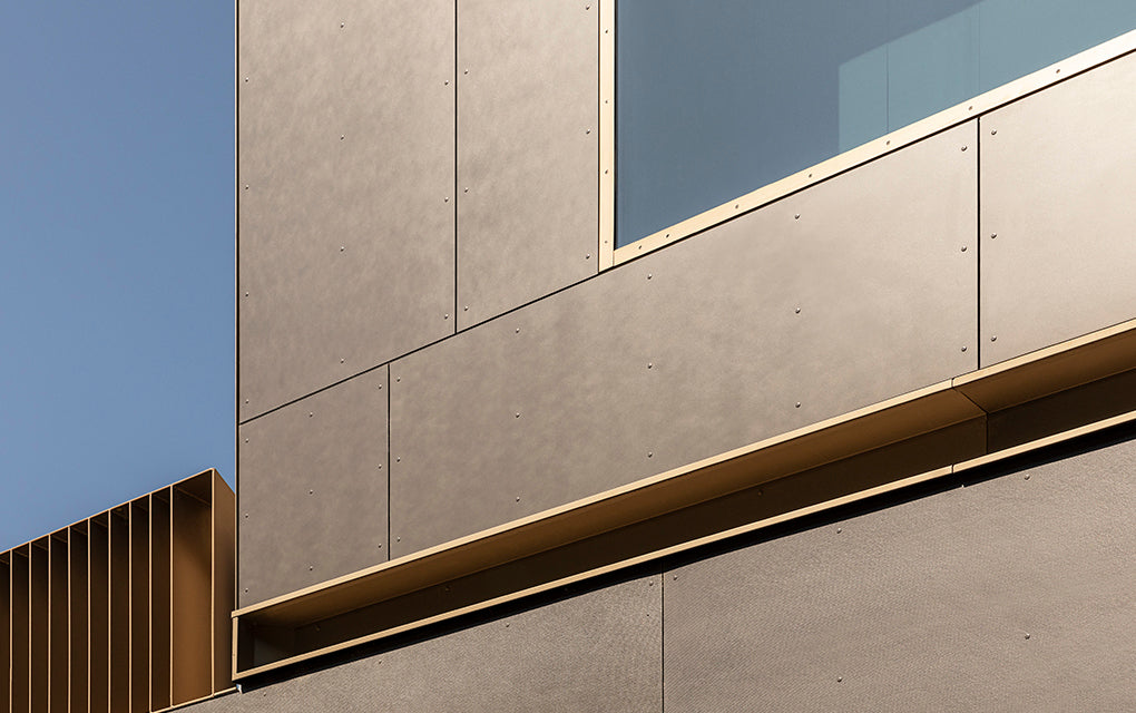 Nobilis is a grey panel with a translucent, lightly pigmented surface that highlights the fibre cement texture in all its natural beauty and elegance. The sophisticated shades of Nobilis create an effortless aesthetic and elegant lightness. As a naturally dried and lightly pigmented fibre cement panel, Nobilis is restrained and precisely because of this becomes an aesthetic eye-catcher. Whether deliberate combinations of soft grey tones or expressiveness through unity – Nobilis lends simple elegance to facades and interiors. All shades of the Nobilis colour family are also available with a highly resistant coating that offers greater scratch resistance and protection against heavy soiling and graffiti.